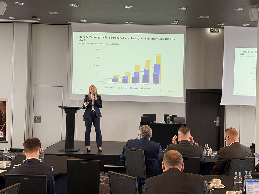 Największe zainteresowanie wzbudziła prezentacja Kamila Nawrockiego dotycząca najnowszych trendów w obszarze fotowoltaiki i magazynowania energii, ze szczególnym uwzględnieniem magazynów energii jako fundamentu stabilności systemu, systemów zarządzania energią i usług sieciowych, cyberbezpieczeństwa jako standardu oraz local content i zrównoważonego rozwoju jako przewagi europejskich technologii.